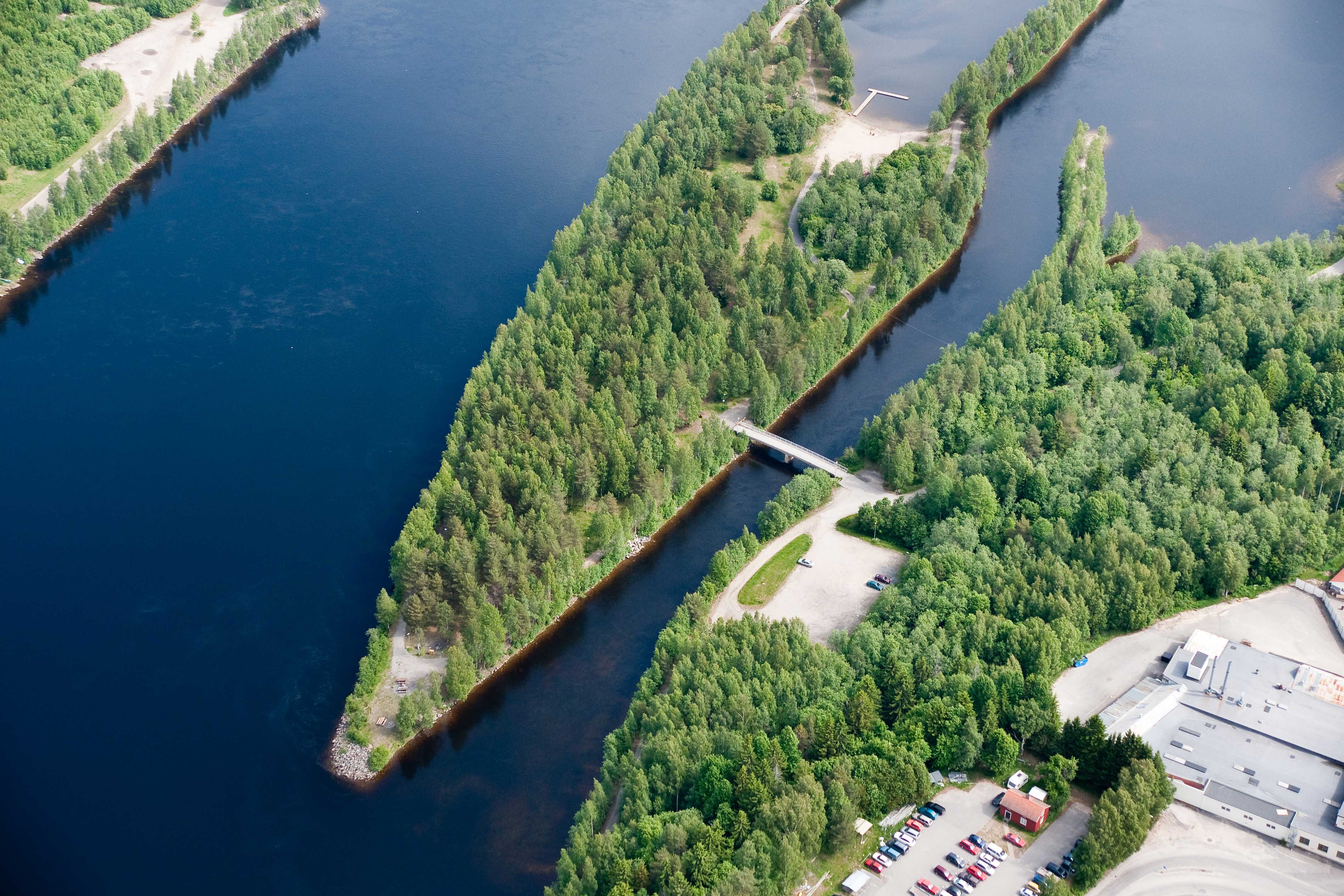 Up until 1980, log driving was commonplace in the area and a number of log booms were placed in the river. The area was home to a timber storage site, logging barracks, and a suspension bridge; the foundations of which are still visible on Gröna Oxen. Other remains exist in the form of arches, logs, and concrete constructions.